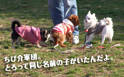 土曜日に、ご近所ワンコ仲間と近所の公園へ行ってきました。