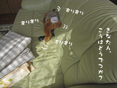 おうちにつくと、きなたんがとろにソファーの正しい使い方を伝授w